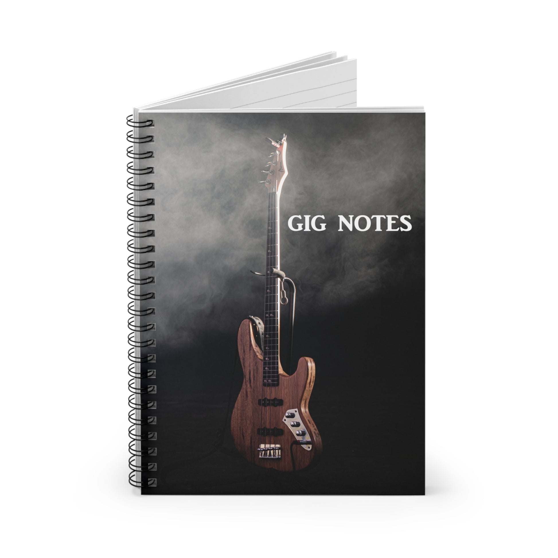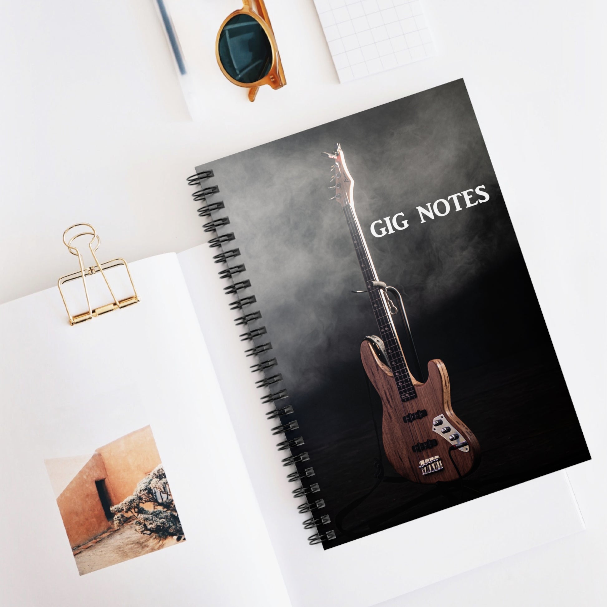 Every musician needs a compact notebook handy for jotting down set lists, band notes, new song chord progressions, gig dates or even to use as a journal. The "Gig Notes Notebook and Journal" is a 118 page spiral notebook with ruled line paper and is compact enough to fit perfect in your case, gig and gear bag or just to carry. The durable, instrument specific, printed cover makes the musician proud to carry it everywhere.
