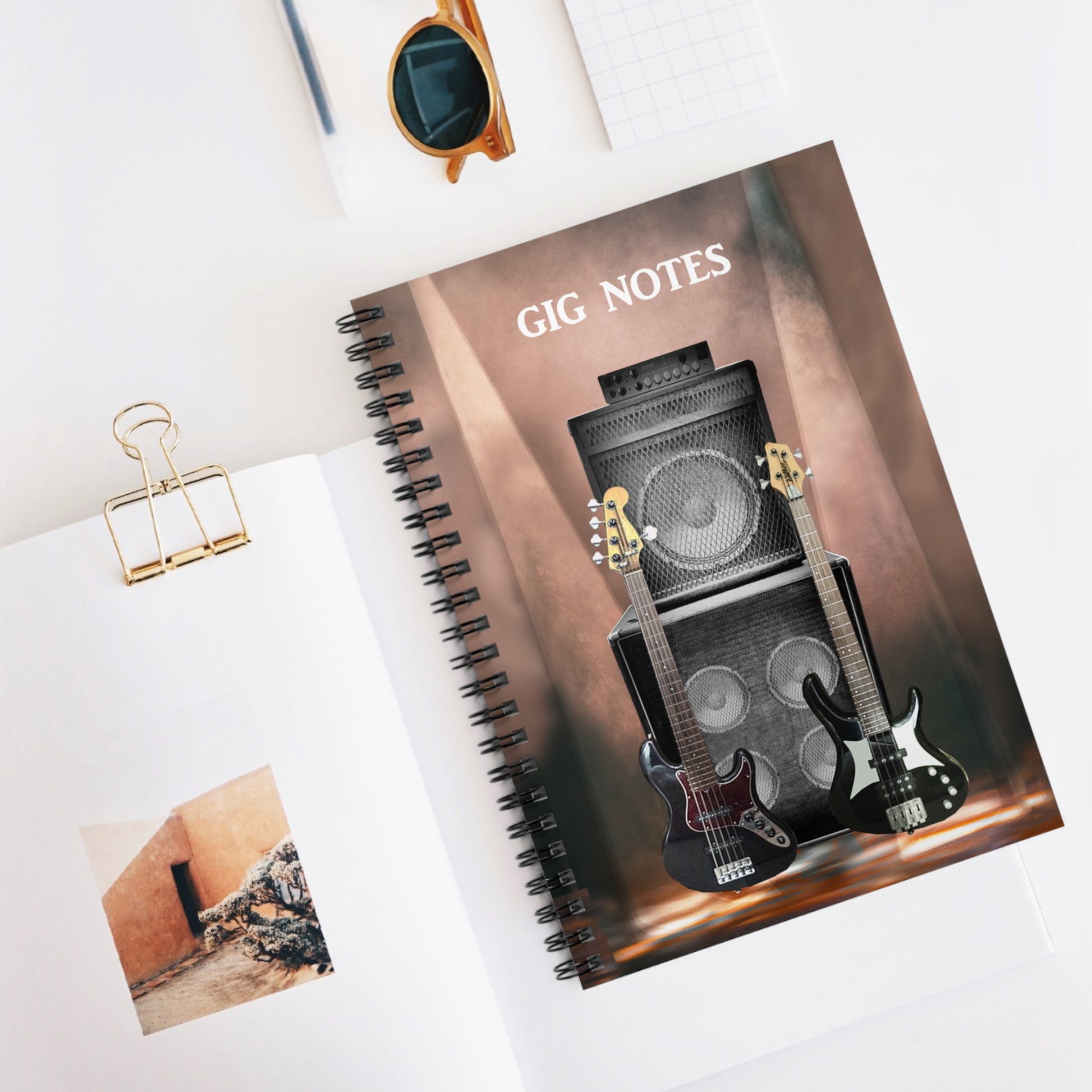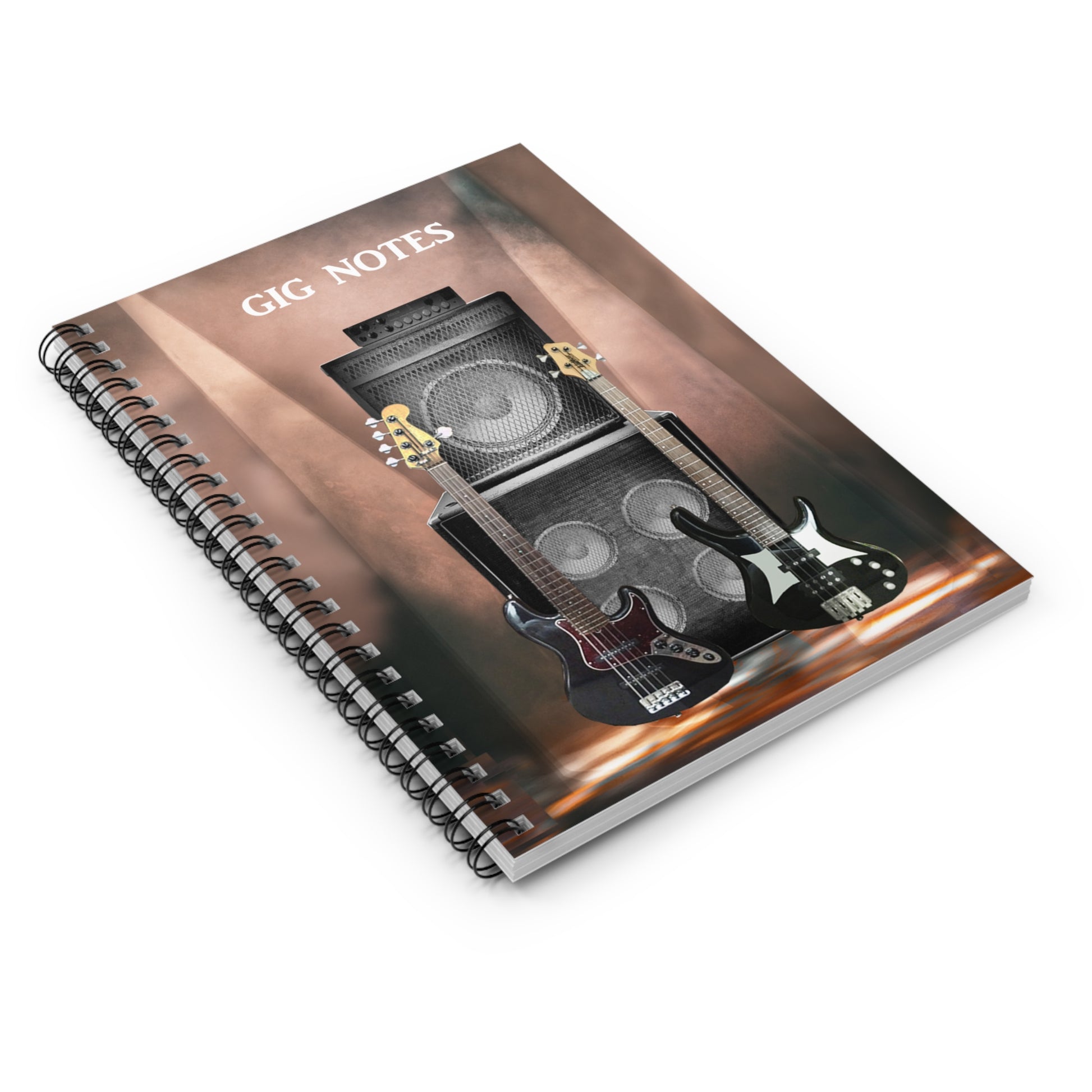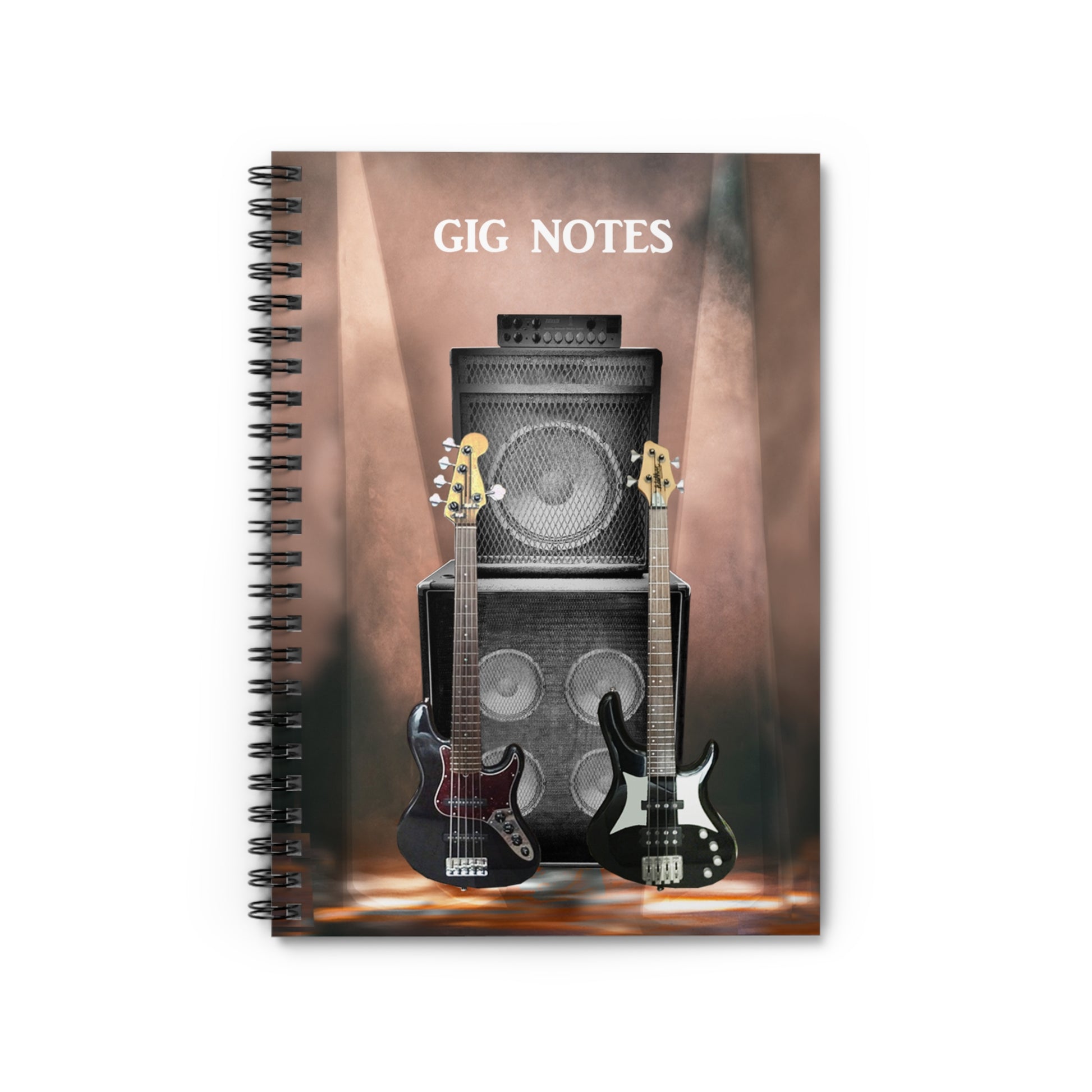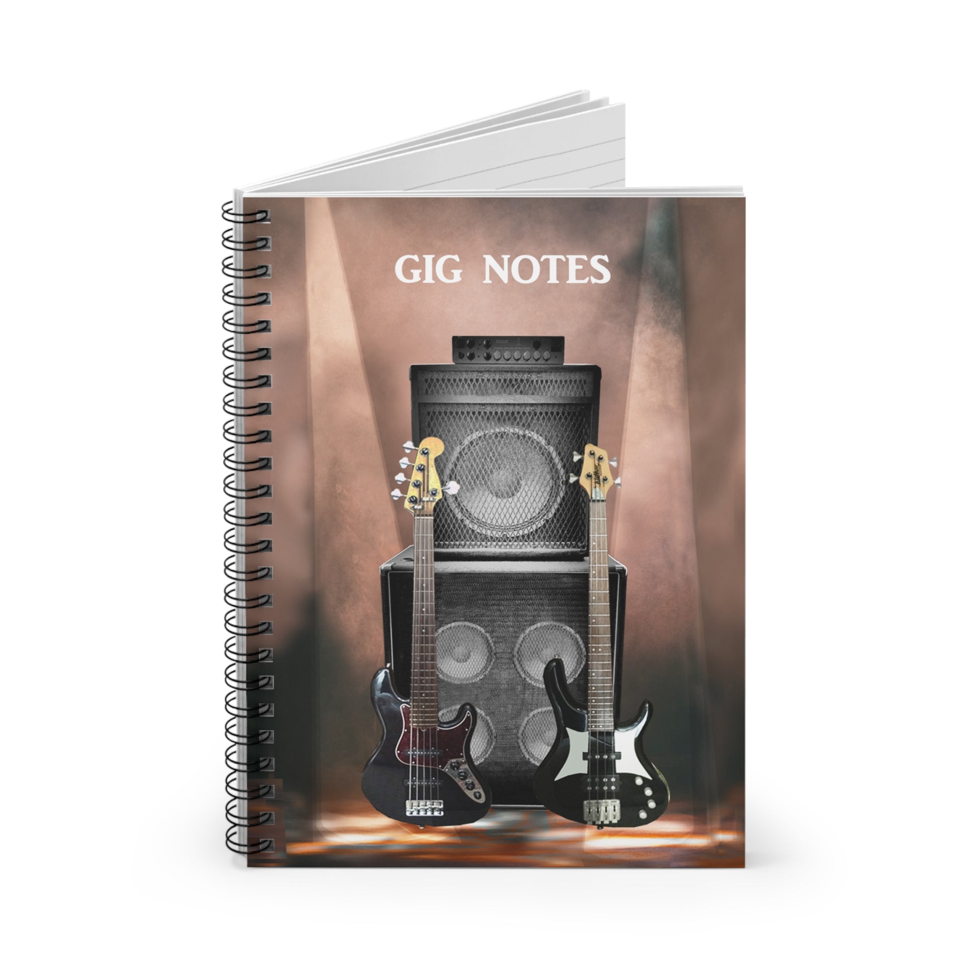 Every musician needs a compact notebook handy for jotting down set lists, band notes, new song chord progressions, gig dates or even to use as a journal. The "Gig Notes Notebook and Journal" is a 118 page spiral notebook with ruled line paper and is compact enough to fit perfect in your case, gig and gear bag or just to carry. The durable, instrument specific, printed cover makes the musician proud to carry it everywhere.