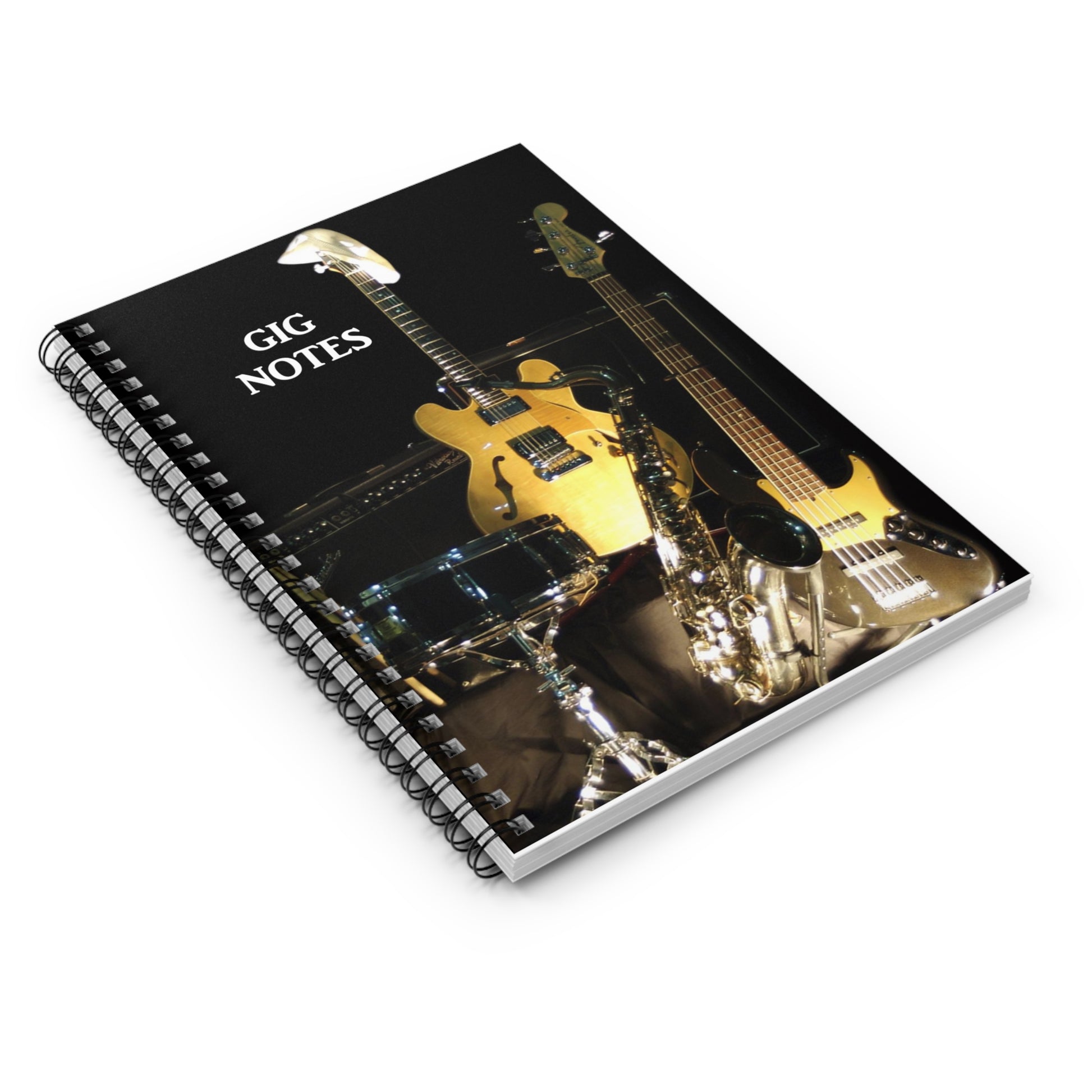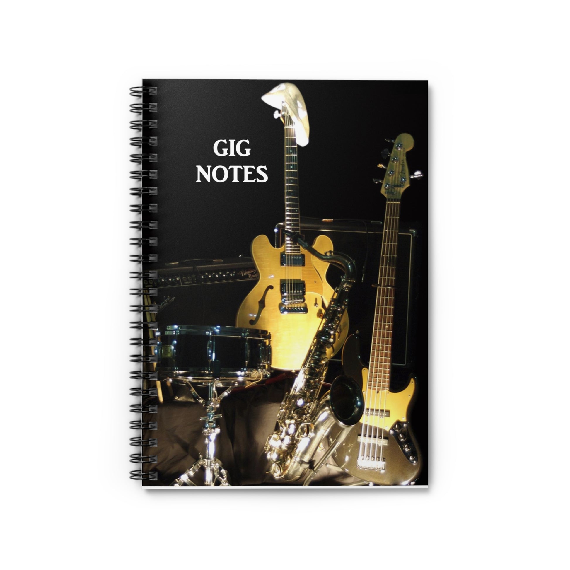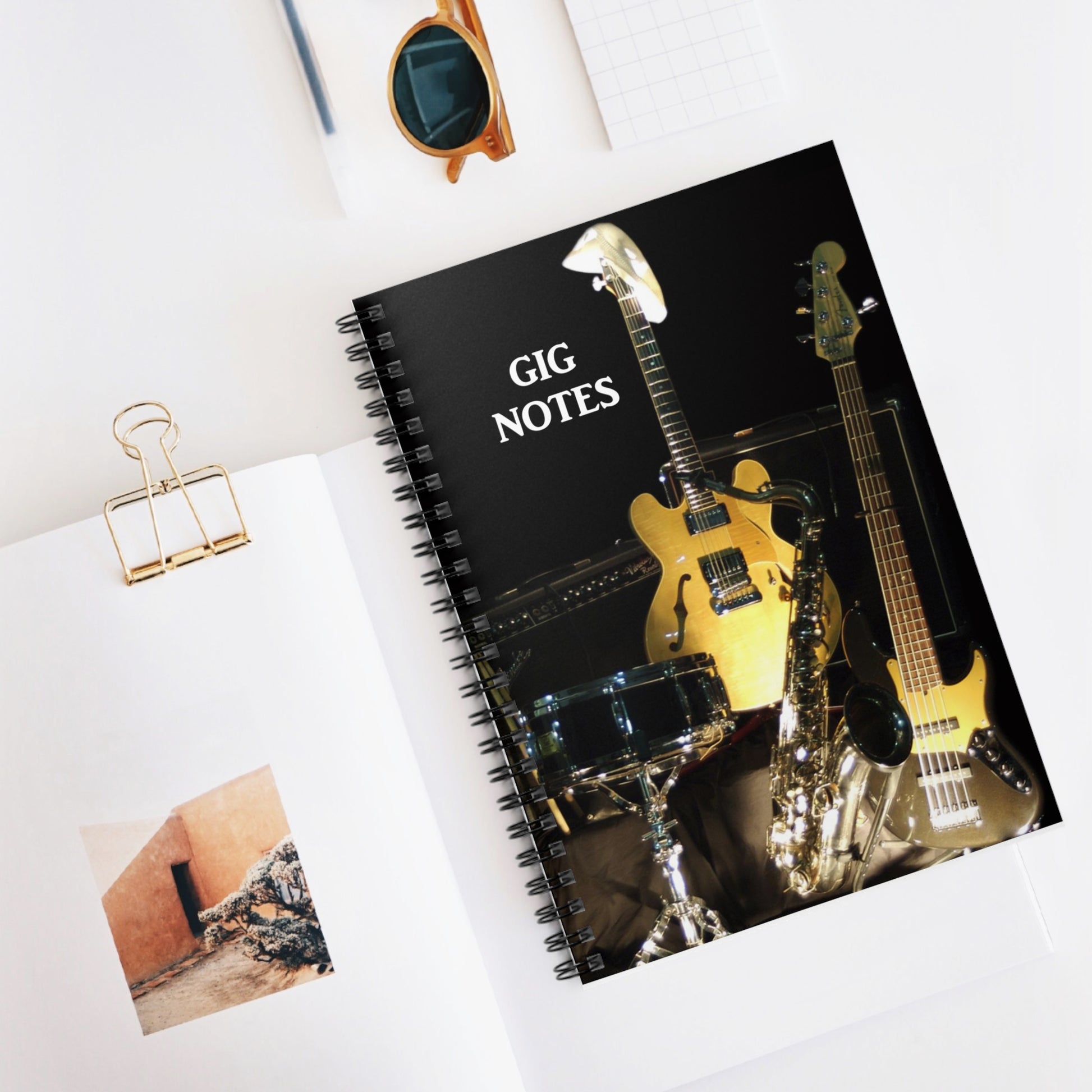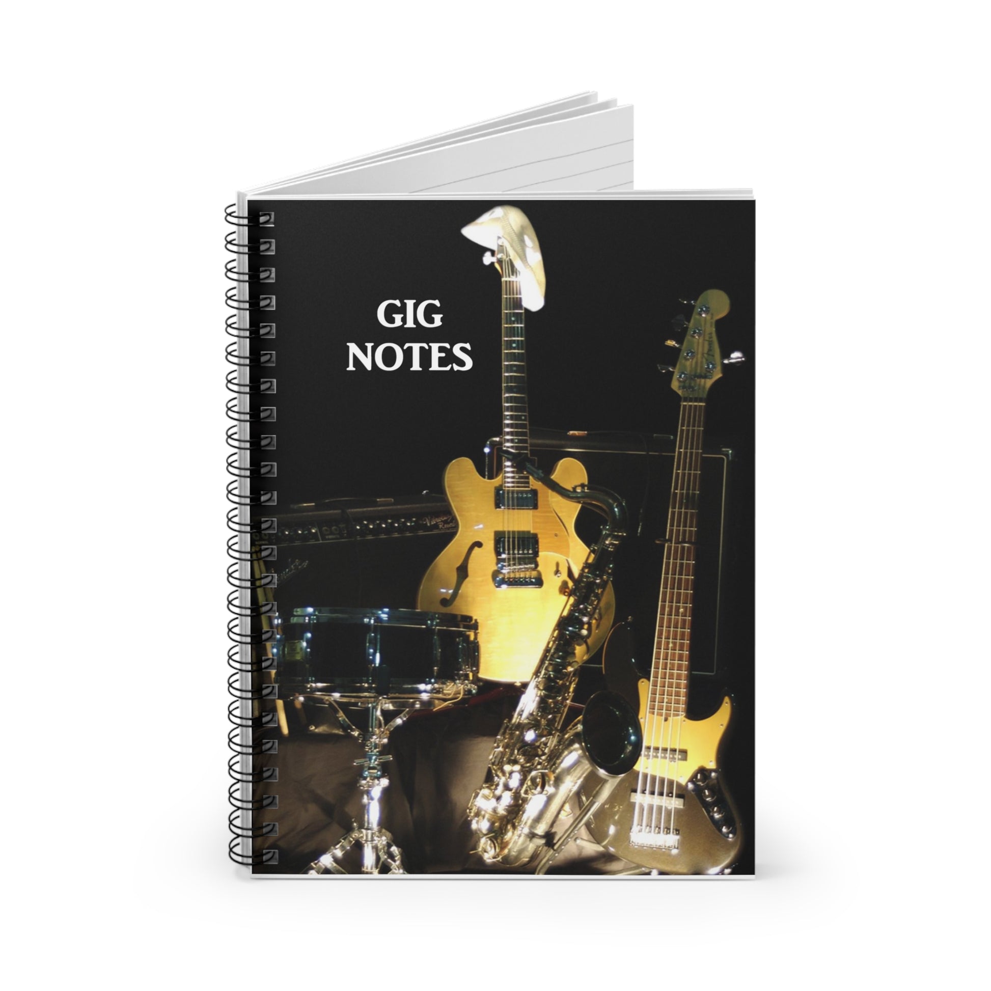 Every musician needs a compact notebook handy for jotting down set lists, band notes, new song chord progressions, gig dates or even to use as a journal. The "Gig Notes Notebook and Journal" is a 118 page spiral notebook with ruled line paper and is compact enough to fit perfect in your case, gig and gear bag or just to carry. The durable, instrument specific, printed cover makes the musician proud to carry it everywhere.