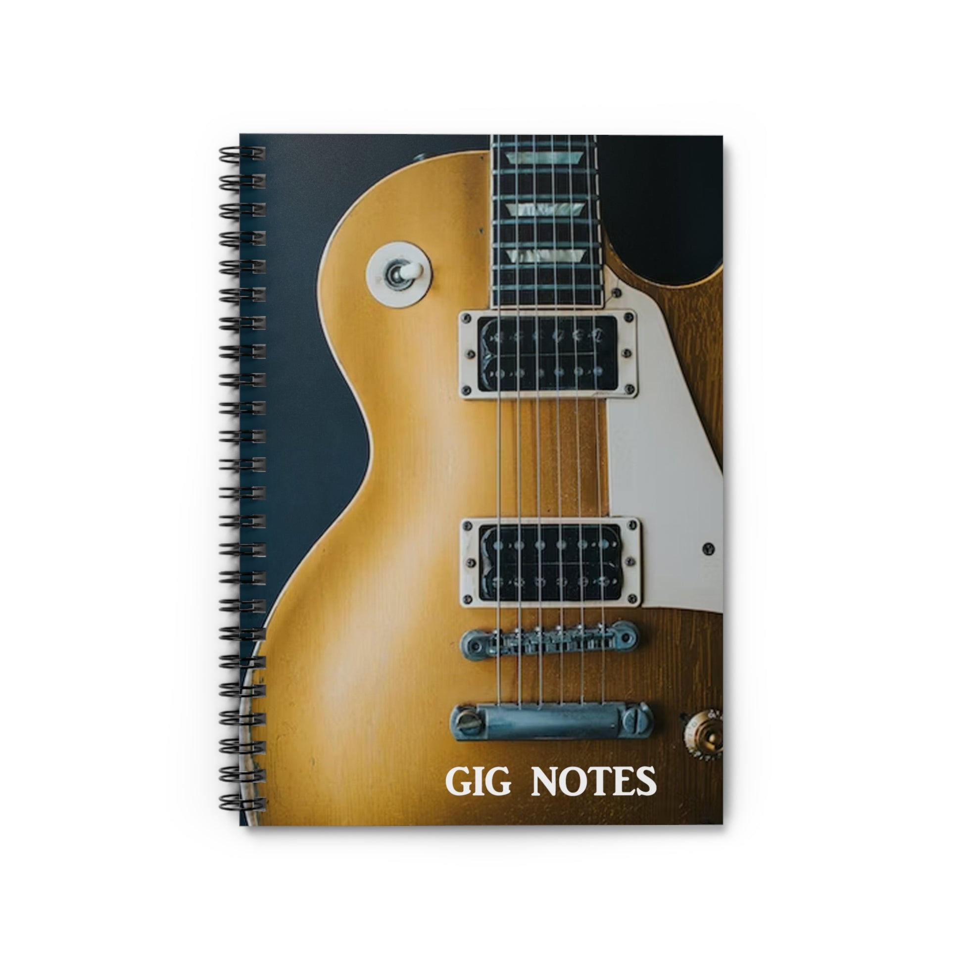 Every musician needs a compact notebook handy for jotting down set lists, band notes, new song chord progressions, gig dates or even to use as a journal. the "Gig Notes Notebook and Journal" is a 118 page spiral notebook with ruled line paper and is compact enough to fit perfect in your case, gig and gear bag or just to carry. The durable, instrument specific, printed cover makes the musician proud to carry it everywhere.
