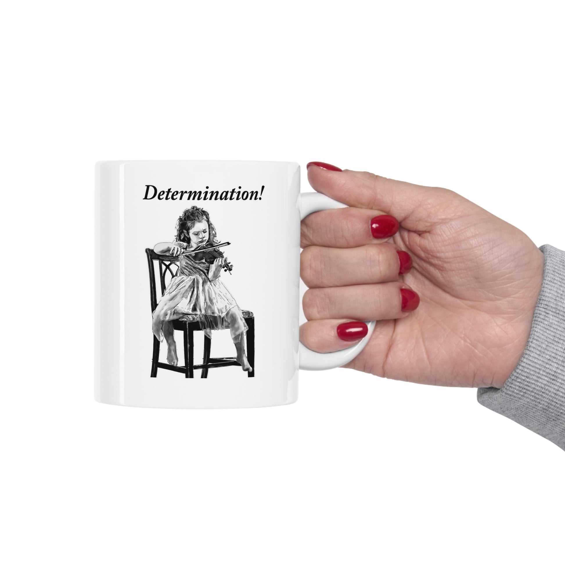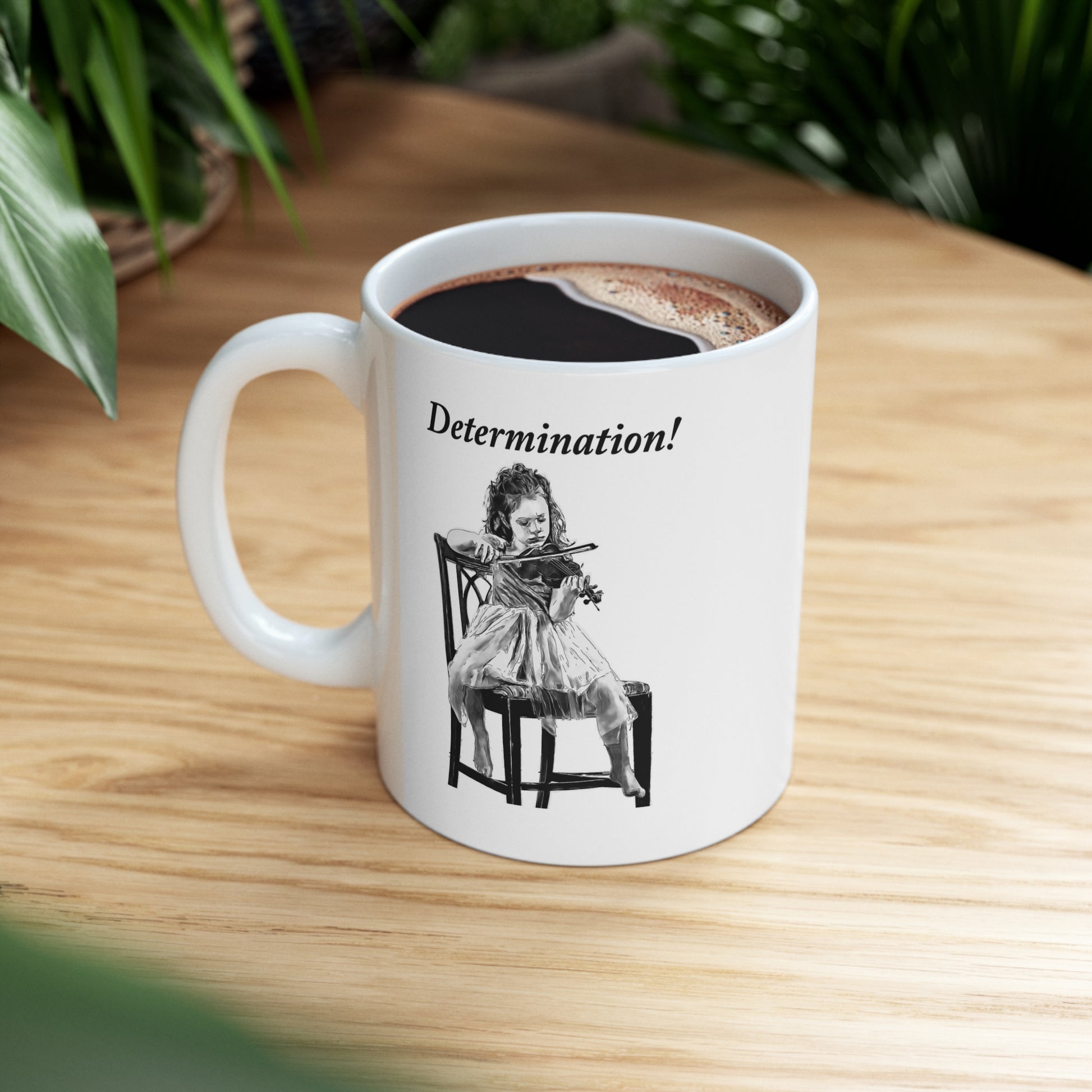 Becoming good at any musical instrument takes determination combined with a passion for that instrument and the beautiful music it is capable of producing. This impactful mug tells it all and is not just for violin players but for every musician struggling to become better at their instrument of choice or as a reminder to those who have mastered theirs. What a great gift for that musician friend, family member, or even yourself! Perfect for coffee, tea, hot chocolate, or any beverage, this classic shape white, durable ceramic mug comes in the most popular size. High-quality sublimation printing makes it an appreciated gift to every true hot beverage lover.