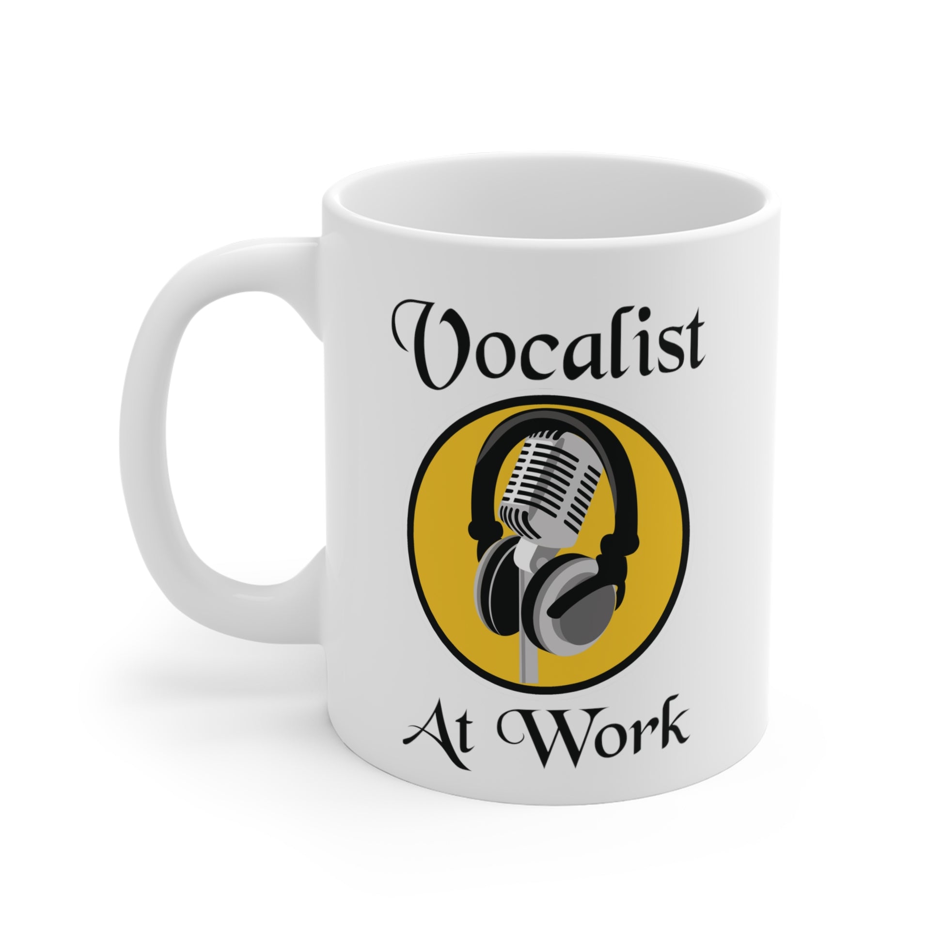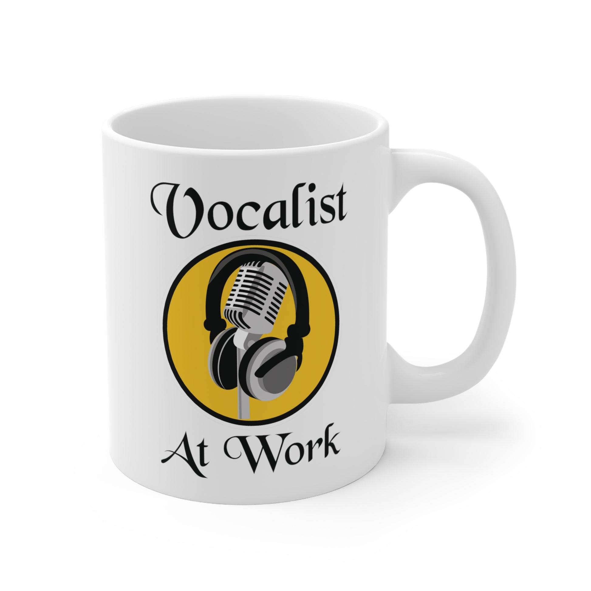 Our colorful "Vocalist At Work" mug is a unique gift for yourself or that special singer in your life. Everyone knows that without vocals a band is just background music, right...just kidding to all you musicians. Good vocals can make a good band great especially when they have not only a lead singer but backup singers or vocals. Whether that special vocalist in your life sings periodically at the local coffee shop, in a rock, country, or blues band, sings in the church choir, on stage with the worship team, or just stretches those vocal cords at home, this mug will be a big hit. See below about visiting our Etsy shop for matching gifts and other products. This classic 11oz., white durable ceramic mug comes in the most popular size and goes through a high-quality dye sublimation printing process.