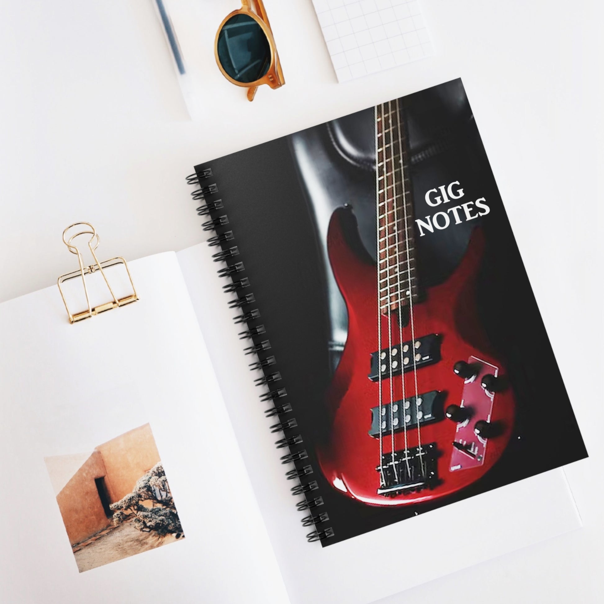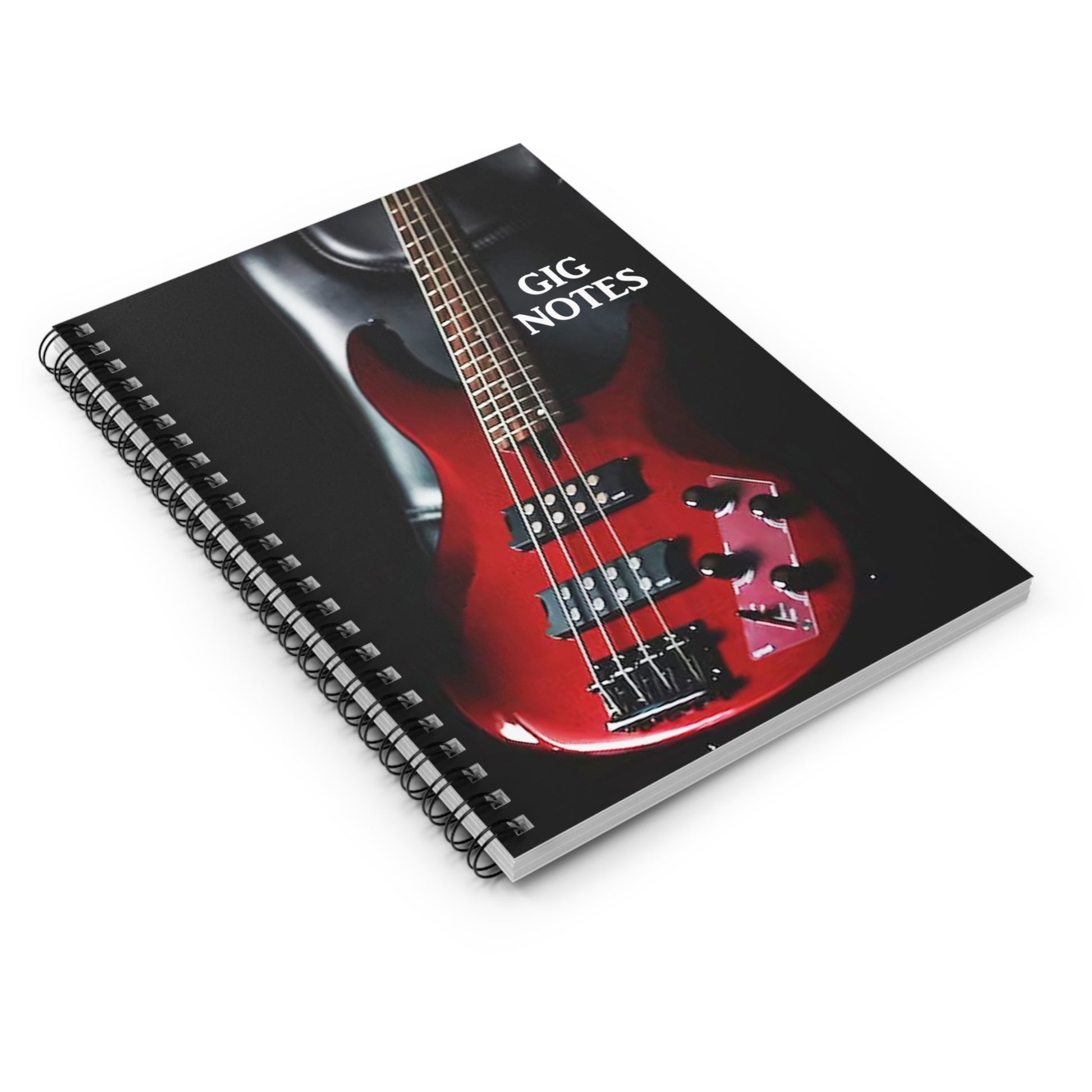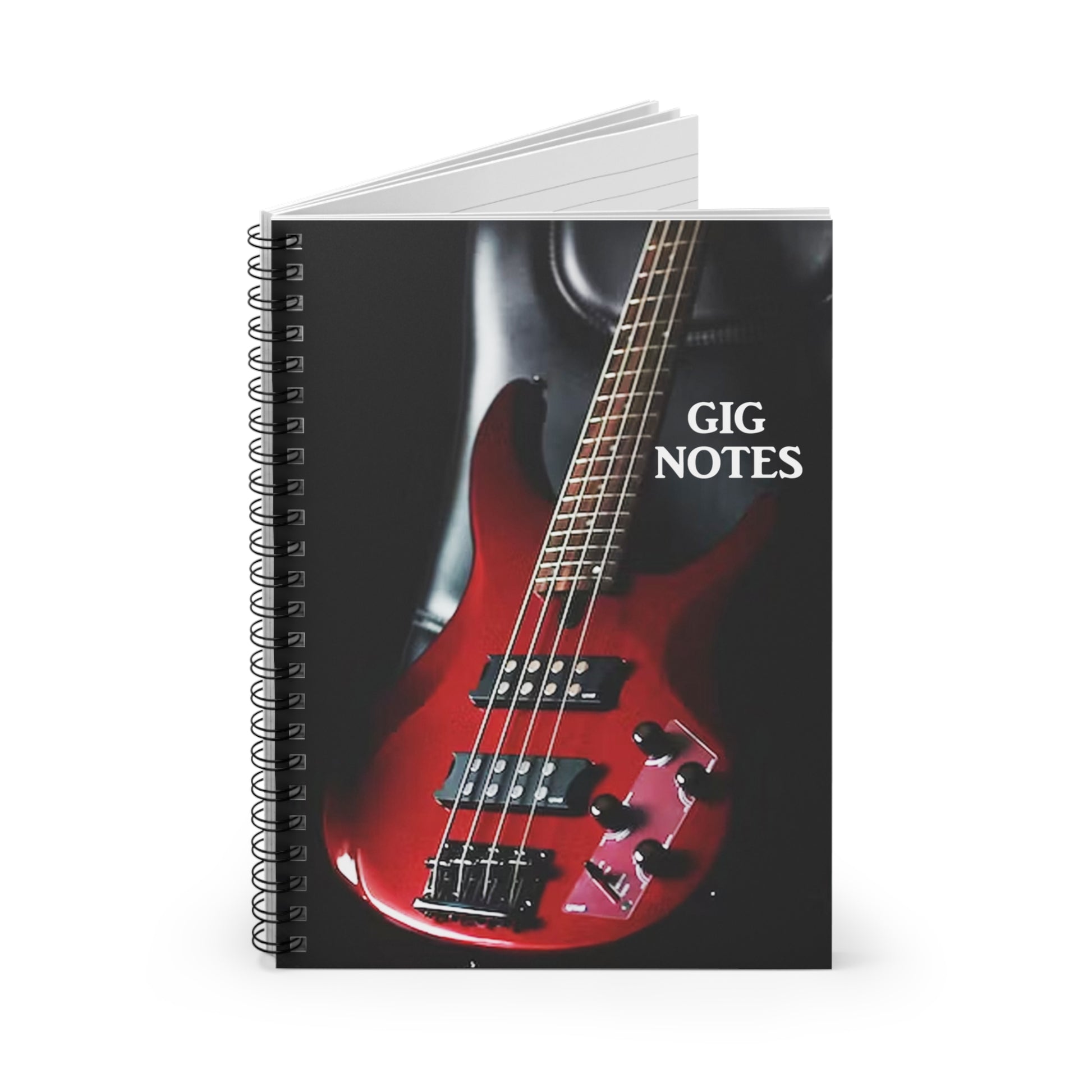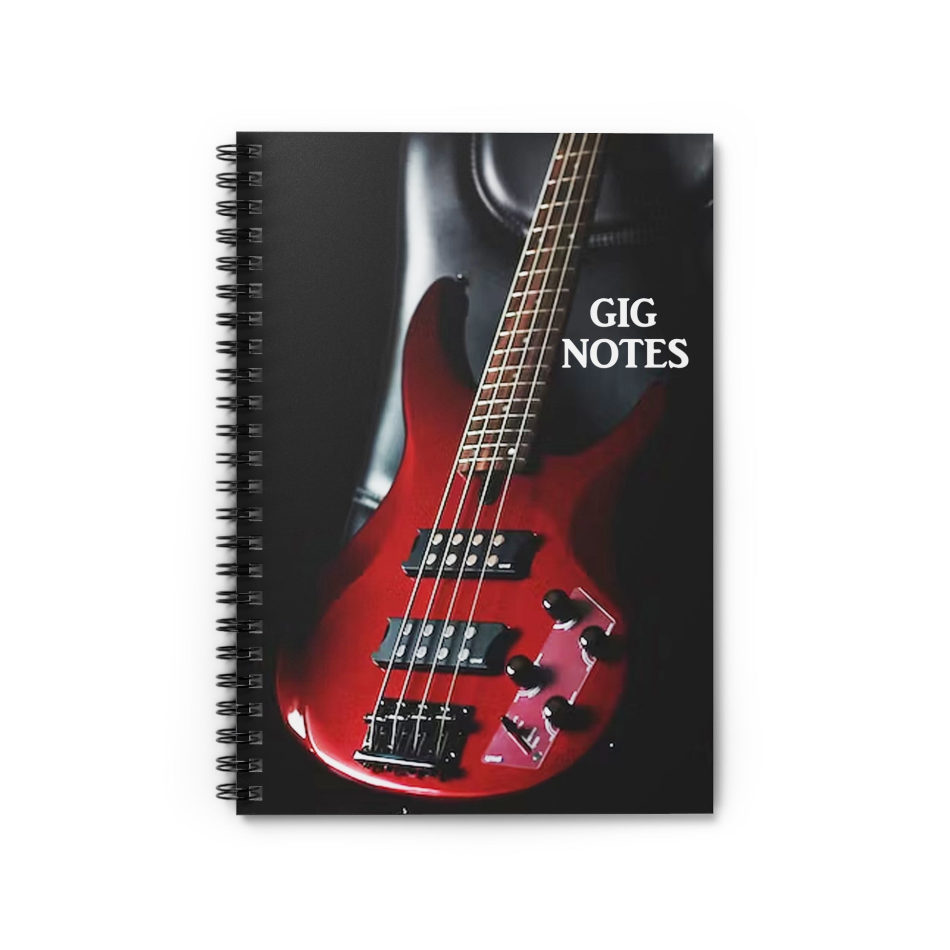 Every musician needs a compact notebook handy for jotting down set lists, band notes, new song chord progressions, gig dates or even to use as a journal. The "Gig Notes Notebook and Journal" is a 118 page spiral notebook with ruled line paper and is compact enough to fit perfect in your case, gig and gear bag or just to carry. The durable, instrument specific, printed cover makes the musician proud to carry it everywhere.