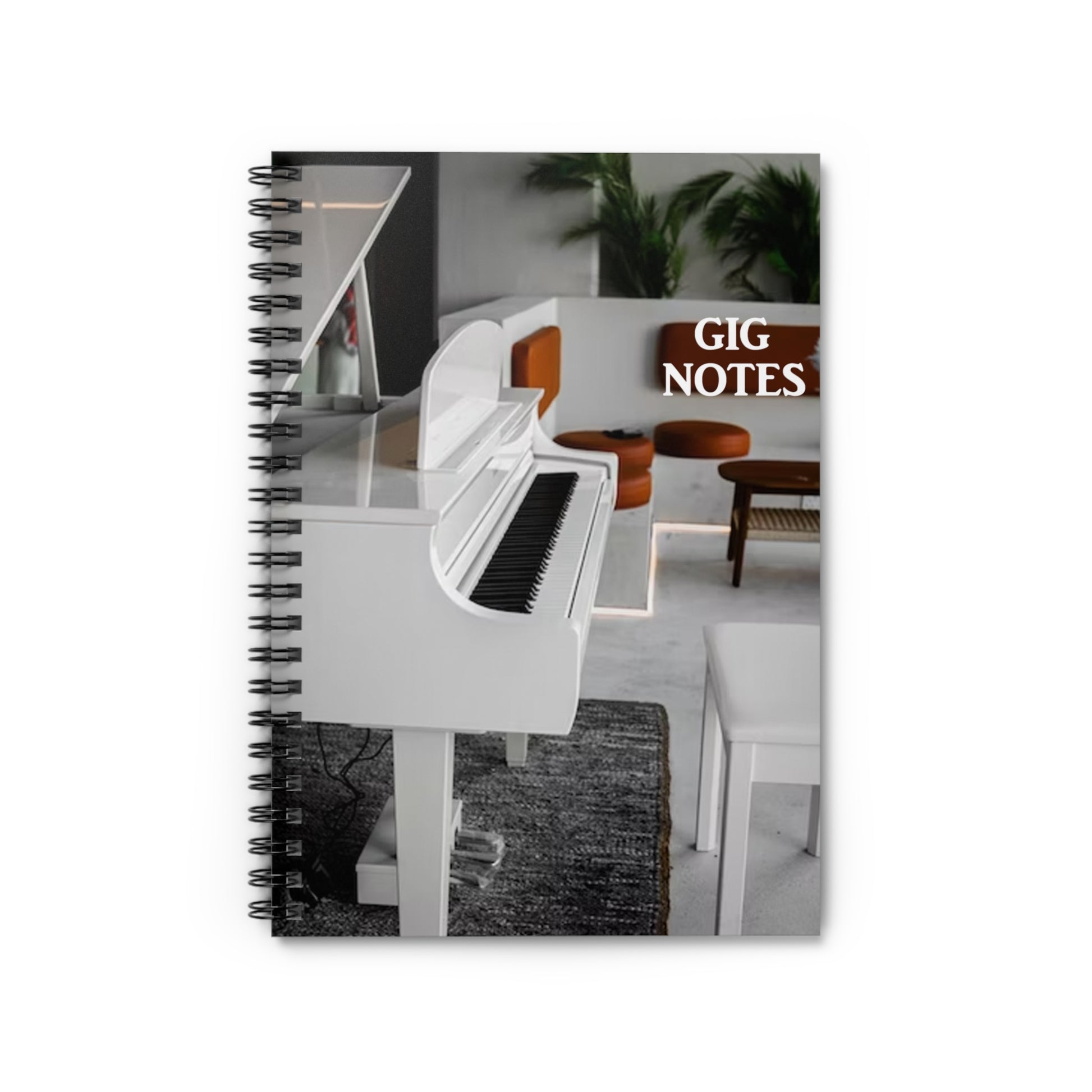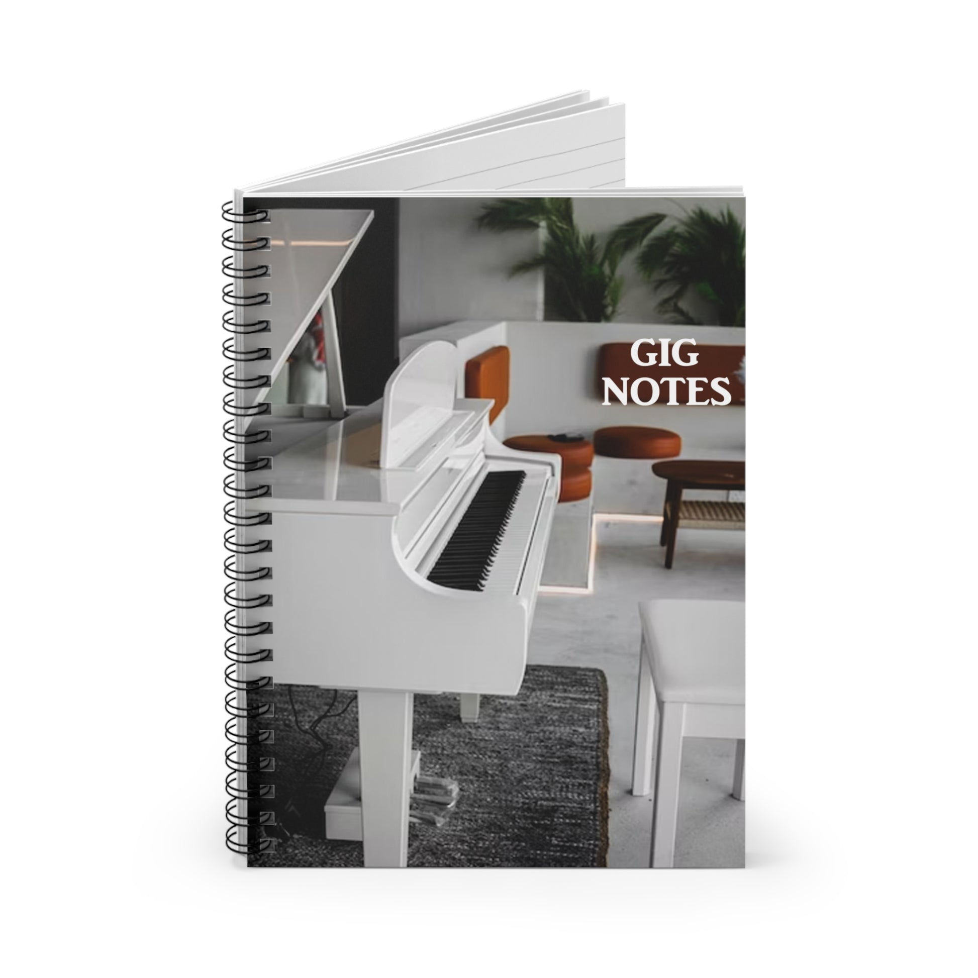 Every musician needs a compact notebook handy for jotting down set lists, band notes, new song chord progressions, gig dates or even to use as a journal. The "Gig Notes Notebook and Journal" is a 118 page spiral notebook with ruled line paper and is compact enough to fit perfect in your case, gig and gear bag or just to carry. The durable, instrument specific, printed cover makes the musician proud to carry it everywhere.