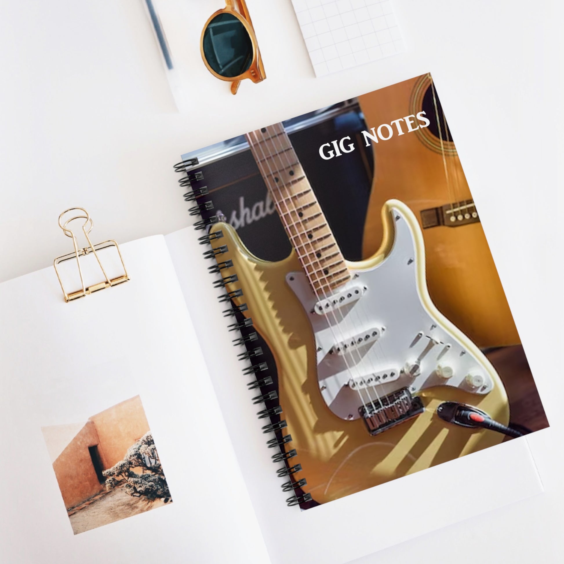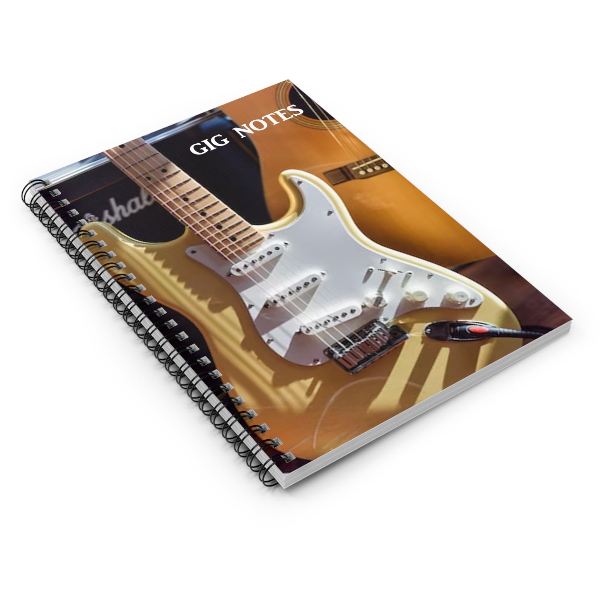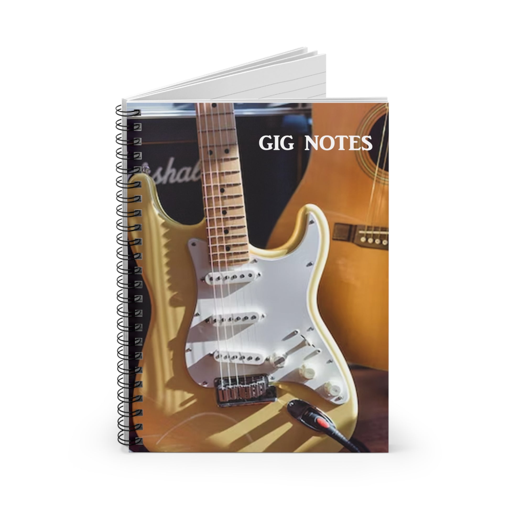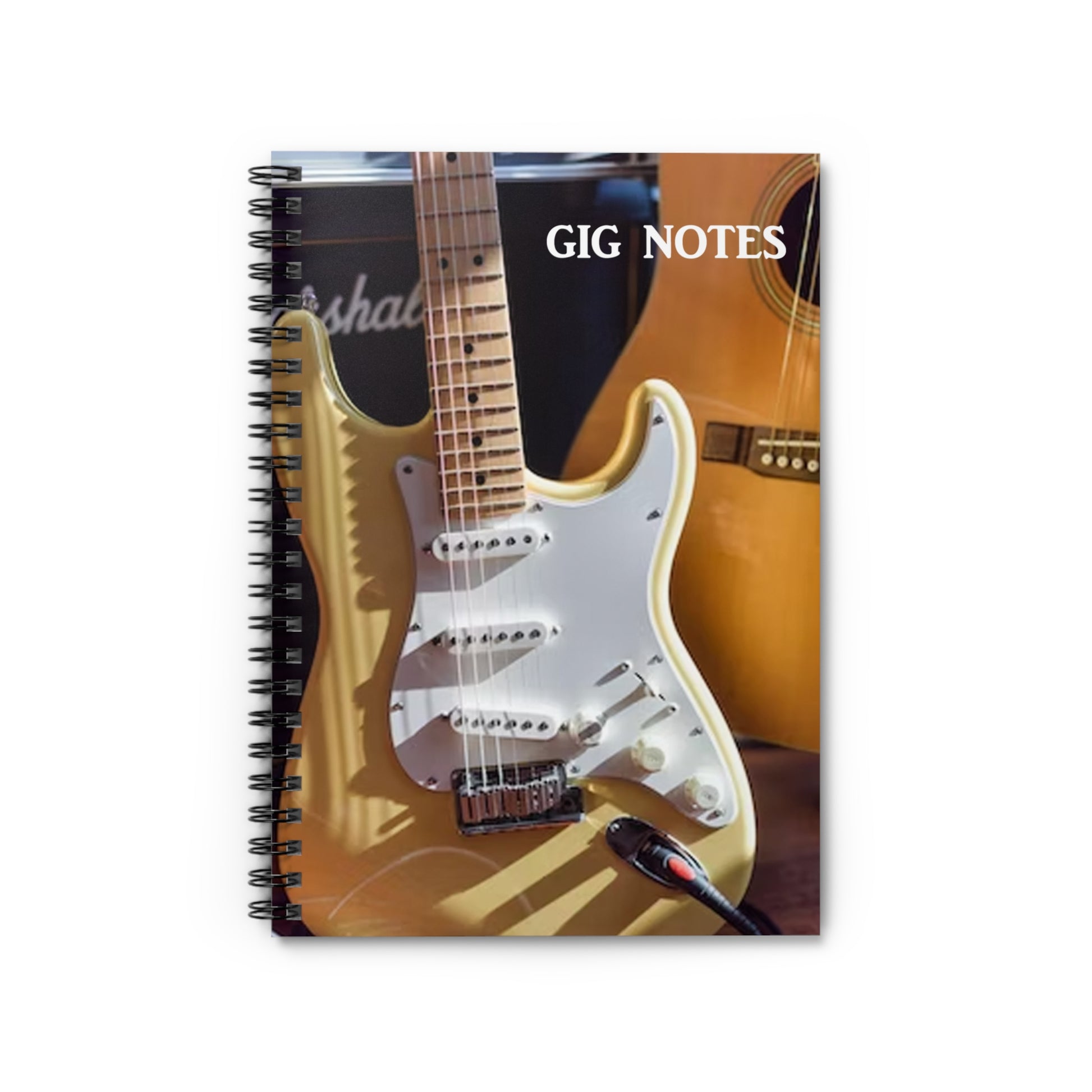 Every musician needs a compact notebook handy for jotting down set lists, band notes, new song chord progressions, gig dates or even to use as a journal. The "Gig Notes Notebook and Journal" is a 118 page spiral notebook with ruled line paper and is compact enough to fit perfect in your case, gig and gear bag or just to carry. The durable, instrument specific, printed cover makes the musician proud to carry it everywhere.