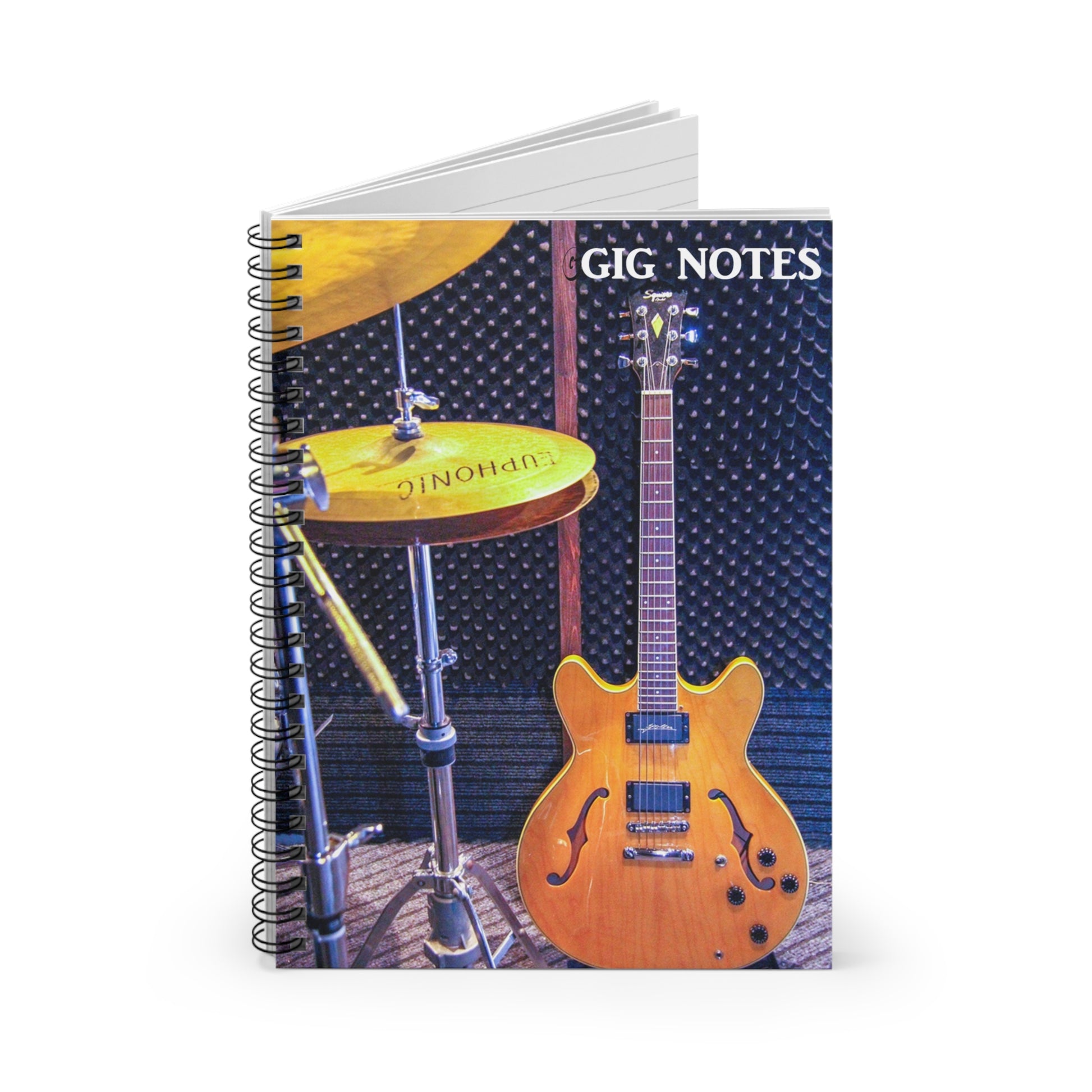 Every musician needs a compact notebook handy for jotting down set lists, band notes, new song chord progressions, gig dates or even to use as a journal. The "Gig Notes Notebook and Journal" is a 118 page spiral notebook with ruled line paper and is compact enough to fit perfect in your case, gig and gear bag or just to carry. The durable, instrument specific, printed cover makes the musician proud to carry it everywhere.