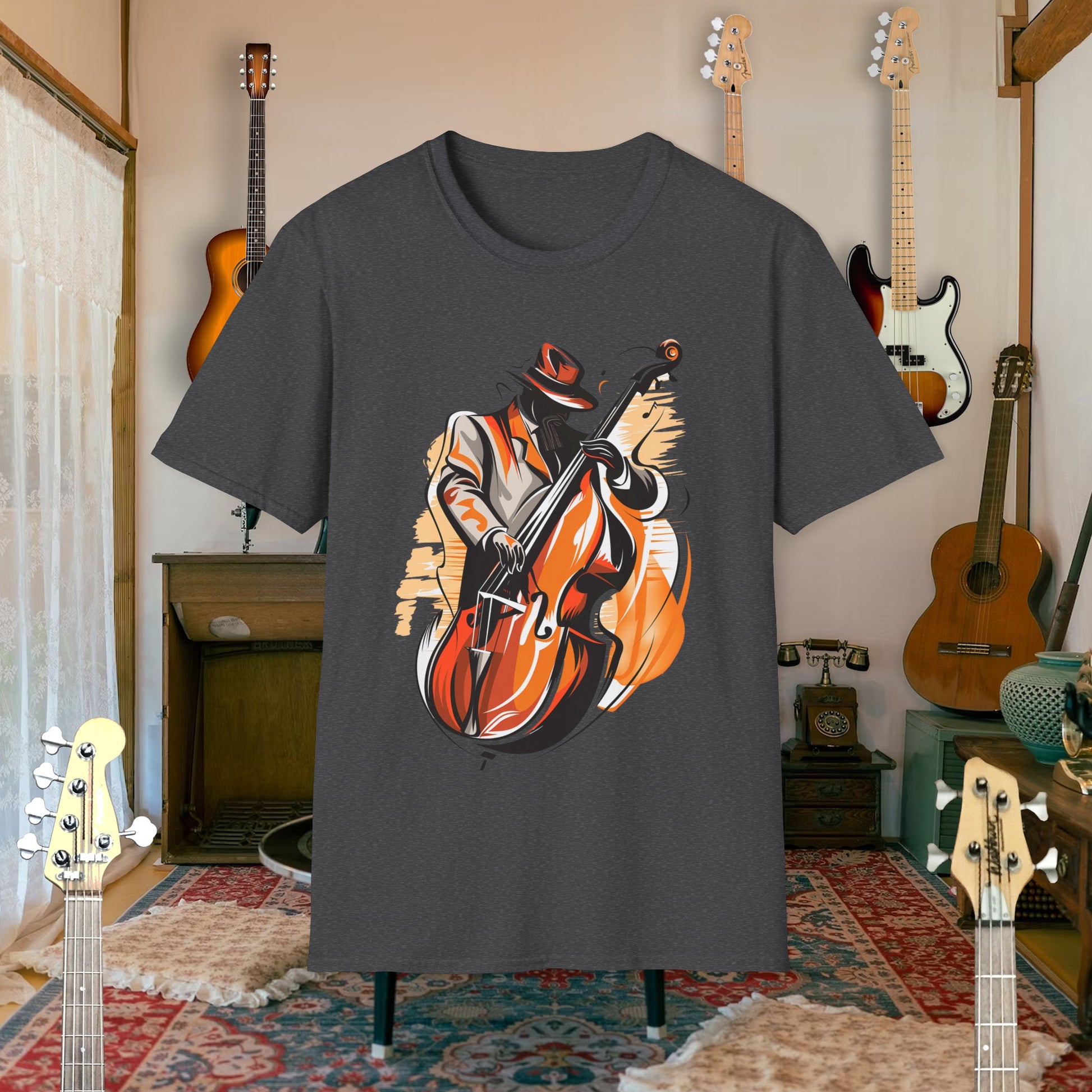 Our Music Pro, colorful, Upright Bass Guitar T-shirt is another one of our "smooth" studio designs. Whether that special bass player is a studio bassist, plays in a blue grass, jazz, or blues band or just loves to "make some noise" at home, this shirt will make a great gift or just treat yourself. This cool T shirt needs to be in every Double Bass players collection. It will be a hit at your next band jam or money gig. This updated unisex essential fits like a well-loved favorite. Super soft cotton, excellent quality print and down right "coolness" will make you want to wear this everywhere. Our shirts are shipped in self sealing poly mailer with high adhesive seal strip and UV protected coating inside package and tightly secured providing excellent protection during shipment