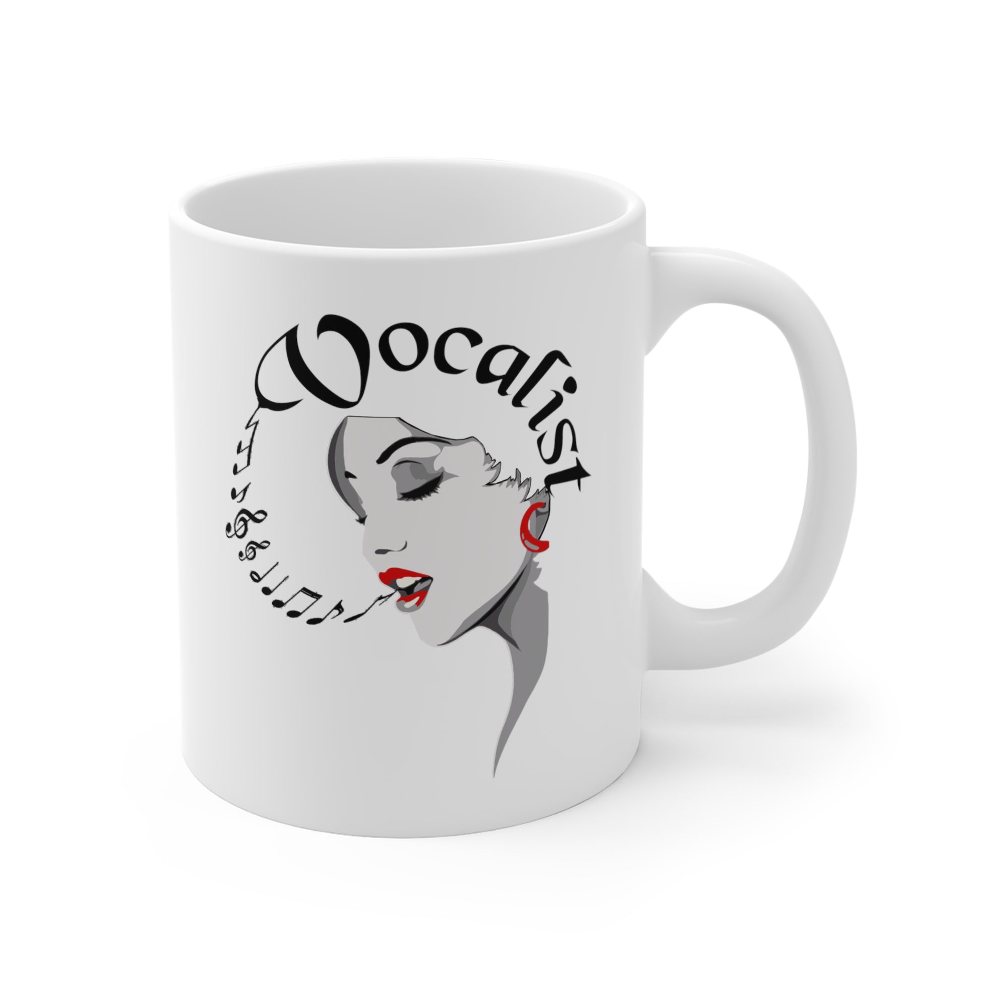 Everyone knows that without vocals a band is just background music, right...just kidding to all you musicians and instrumental music lovers. Good vocals can make a good band great especially when they have not only a lead singer but backup singers or vocals. Our stunning Female Vocalist mug is a unique gift for that special singer in your life or just treat yourself. Whether singing in a rock, country, or blues band, singing in the church choir, on stage with the worship team, or just stretching those vocal chords or even just "hangin out" at home, this cool mug needs to be in the kitchen, office or studio of every singer. Whether it's used to enjoy a nice warm beverage or just to sit on the desk and hold pencils, this fun music mug will be a big hit.
